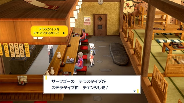 テラスタイプ「ステラ」と他のテラスタイプは性質が異なるため、状況に応じて使い分けることが重要です。「テラバースト」の効果のほか、例えば、技のダメージは、他のテラスタイプだとテラスタル後のタイプで相性の影響を受けていましたが、「ステラ」はテラスタルする前のタイプで影響を受けます。ゲームを進めることで入手できる「テラピースステラ」をパルデア地方のチャンプルタウンの宝食堂で渡すと、ポケモンのテラスタイプを「ステラ」にすることができます。バトルに臨む前に戦術を練り、ベストなテラスタイプにしましょう。