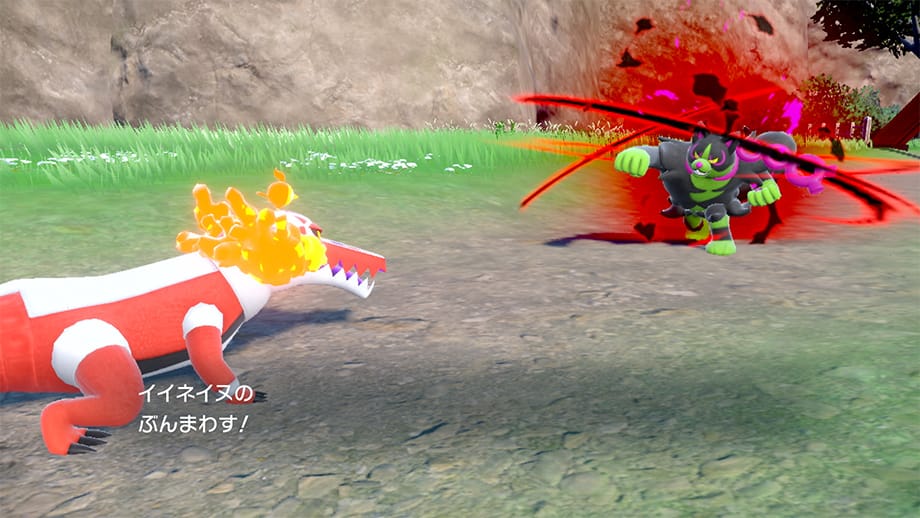 「前編・碧の仮面」に登場する、「イイネイヌ」「マシマシラ」「キチキギス」の特性「どくのくさり」は、本作から登場する新しい特性です。3匹が攻撃を当てると、つながれた毒の鎖の力で相手をもうどく状態にすることがあります。
