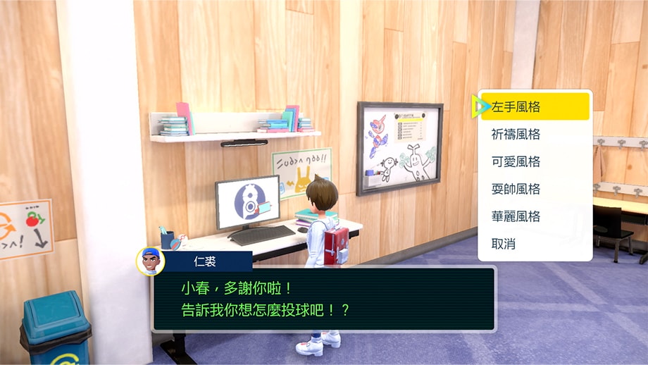 捐贈「BP」給藍莓學園的棒球社,就能改變投擲精靈球的姿勢。投球姿勢有很多種,找到喜歡的投球姿勢,更加享受寶可夢對戰的樂趣吧。