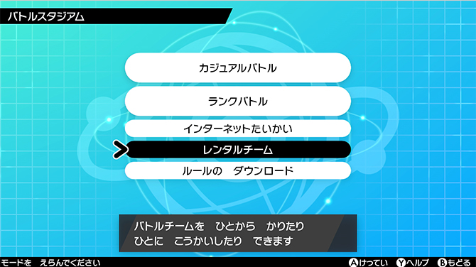 レンタルチームとは、IDが公開されている他の人のチームを使ってバトルしたり、自分のバトルチームを公開して使ってもらったりする機能です。