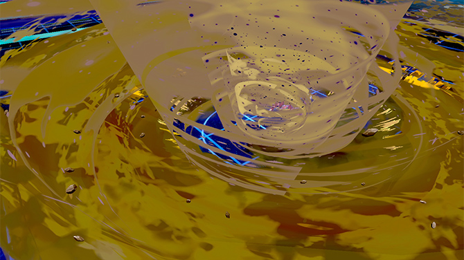 砂袋に蓄えられていた砂が溢れ出し、首の周りを覆うようになった。巻き上げた砂と相まって、身にまとう砂は100万トンを超える。その姿はさながら巨大な竜巻のようだ。
