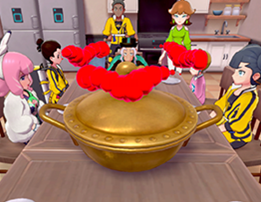 ヨロイ島の道場で作れる料理「ダイスープ」。キョダイマックスの可能性を秘めたポケモンが飲むと、キョダイマックスすることができる特別なポケモンになるぞ!