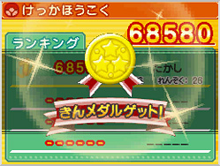 遊んだ成績によって、金・銀・銅のメダルをゲットすることができるよ。