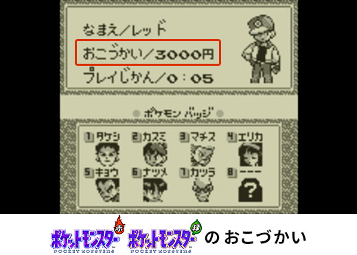 冒険の出発の時にお母さんのくれるおこづかいが3万円! 『ポケットモンスター 赤・緑』の頃は3,000円だったと思うと、時の流れを感じる…