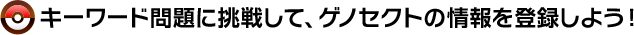 ポケモンに関する、さまざまな問題に答える「ポケモンチャレンジ」で、特別なキーワードを入力しキーワード問題に挑戦することによって、ゲノセクトの情報が登録されるぞ!