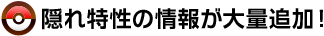 「ポケモンドリームワールド」や『ポケモンARサーチャー』などで出会えるポケモンたちの、隠れ特性の情報も追加されたぞ!