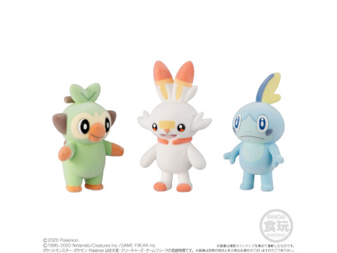 ポケモンのフロッキードール「ポケモふどーる」の第5弾が登場! ガラル地方から、「サルノリ」「ヒバニー」「メッソン」が仲間入りするよ。 そのほかにも、フロッキー加工に合うかわいいポケモンたちをラインナップした、全7種類!