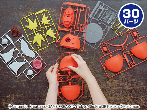 ポケモンの魅力を詰めこんだ、とにかく大きいプラモデル「ポケプラBIG」が登場! 第1弾は、「さかなポケモン」のコイキングだよ! 組み立てやすい、大きな全30パーツで構成されていて、組み立てた後の大きさは、全長約20センチ! 組み立てて、シールを貼るだけで、カラフルなコイキングが作れるよ。特徴的なひげは、折れにくい素材でできているから、組み立てた後は、動きを付けて遊んでみてね。ボディパーツの差し替えで、わざ「はねる」の躍動感あるポージングも表現できるよ。専用ディスプレイベース付きだから、組み立てたあとは、お部屋に飾ってね。