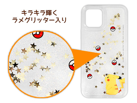 ケースを傾けるとグリッターがゆらゆらと動き回って、とてもかわいい! キラキラと輝く星型パーツとモンスターボールパーツ入りのケースだよ。ケースを装着したまま、ライトニングケーブルやイヤホンの接続が可能だから、充電や音楽を聴くのにも便利だね。 ストラップホール付きだから、好きなストラップも付けられるよ。