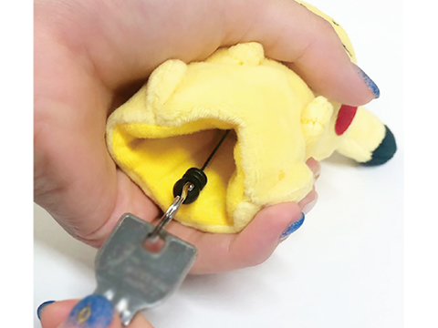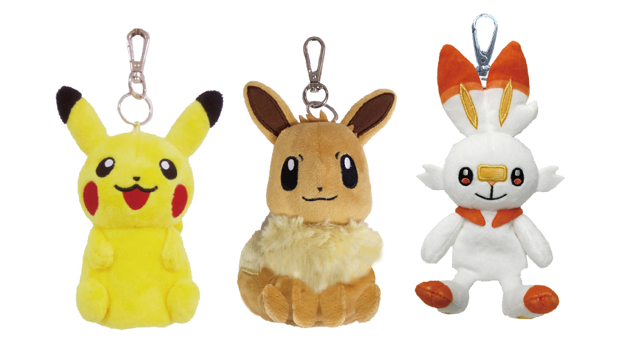 ピカチュウなどのポケモンたちのかわいいぬいぐるみ型キーカバーが登場! ピカチュウ・イーブイ・ヒバニー・カビゴン・ゲンガー・メタモン・ヤドン・ラプラスの8種類! リール部分が伸びるから、カバンなどにつけたまま鍵が使えて便利だよ。