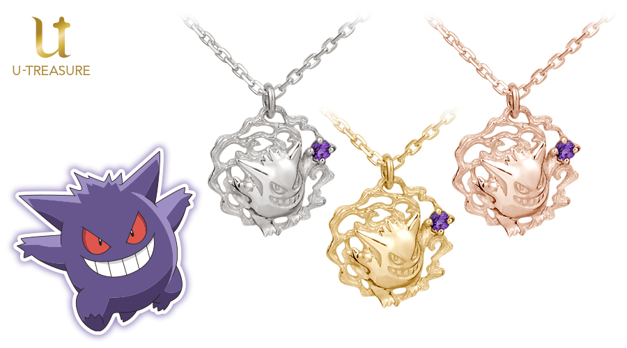 ユートレジャーから、怪しい雰囲気をまとったゲンガーをデザインしたネックレスが登場! ゲンガーをイメージした、天然石のアメシストがポイントだよ。