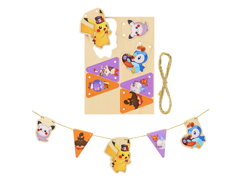 おめかしをしてもらったすがたがかわいいぬいぐるみやマスコットのほか、メラミンプレートやガーランドなど、ハロウィンパーティーに使えるグッズが登場するよ。ポケモンたちといっしょに、ハロウィンを楽しもう!
