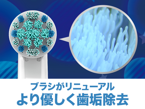 ピカチュウがデザインされた、子供用電動歯ブラシ「すみずみクリーンキッズ」シリーズが、リニューアル! 独自のブラシが新しくなり、よりやさしく歯垢除去できるようになったよ。 新製品の「キッズPRO」は、虫歯の原因となる歯垢をたたき落とす3D丸型回転で、歯垢除去力が99.7%※もアップ。さらに高い歯垢除去力を実現したよ! 歯ブラシを押しつけすぎた場合は、過圧ストッパーで上下運動をストップさせるから、安心して使えるね。 ※手磨きとの比較。P&G調べ。 専用ウェブコンテンツ「ポケモンブラッシングマスター」を見ながら歯磨きすると、毎日いろいろなポケモンに出会えて、楽しく歯磨きすることができるよ。