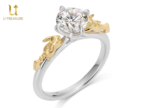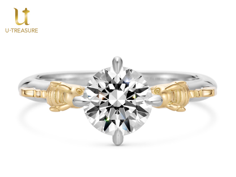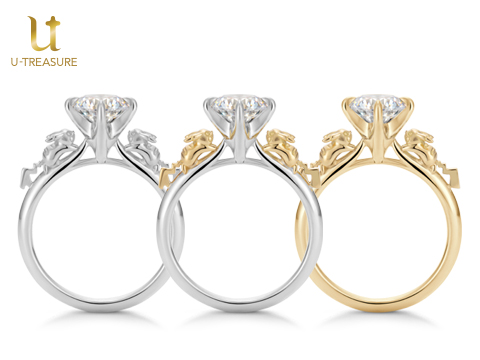 ユートレジャーの「ピカチュウ」の婚約指輪に、新しいデザインが登場! オスとメス、2匹のピカチュウの中央に、1カラット台のダイヤモンドを留められるようになっていて、ピカチュウが仲良くダイヤモンドを見つめているように見える、キュートなデザインになっているよ。