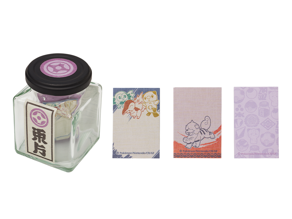 ガーディ(ヒスイのすがた)とアルセウスのぬいぐるみをはじめ、ゲーム内に登場するどうぐをモチーフにした雑貨や文具など、ゲームの魅力がつまったラインナップになっているよ。