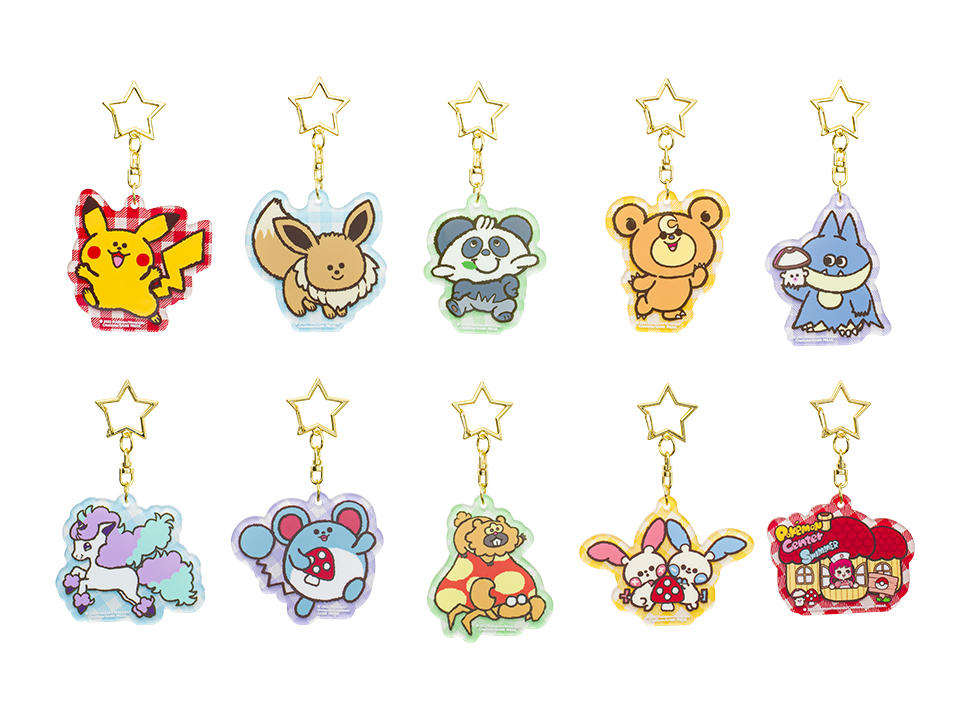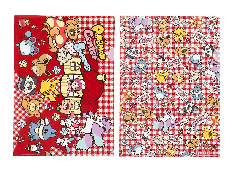 たくさんのキノコが生えた、へんてこな森にやって来たポケモンたち。パラセクトと楽しそうに遊んでいるビッパや、タマゲタケが気になっているようすのゴンベなど、「SWIMMER」らしいキュートな世界観で描かれたポケモンのグッズが勢ぞろい。