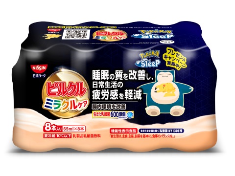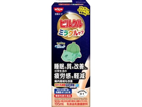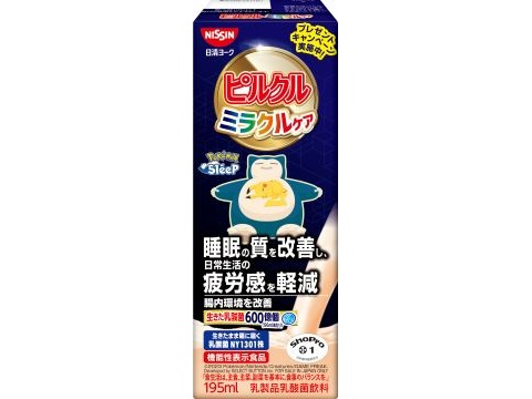 日清ヨークより、「ピルクル ミラクルケア Pokémon Sleep パッケージ」が登場! 「ピルクル ミラクルケア」のパッケージが、睡眠ゲームアプリ『Pokémon Sleep』のデザインになっているよ。 パッケージは全部で10種類。全国のスーパー・コンビニ・ドラッグストアなどをチェックしてね!