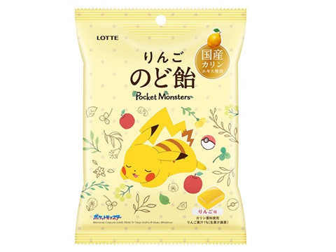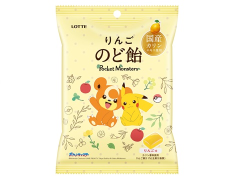 株式会社ロッテより、「ポケモンりんごのど飴」が登場! 大人も子どもも食べやすい、やさしいりんご味ののど飴だよ!