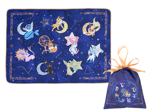 イーブイたちがデザインされたブランケットと巾着のセットで、星空をイメージしたデザインになっているよ。