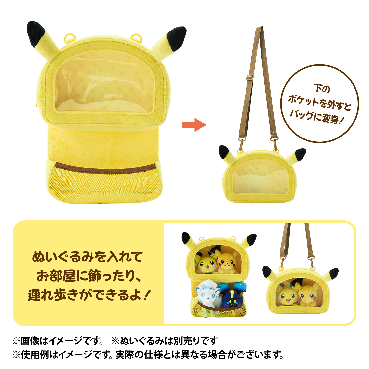 ぬいぐるみとお出かけができる「連れ歩きポーチ モンスターボール」や、『ポケットモンスター サン・ムーン』に登場する、リーリエが持っているドラムバッグをイメージしたミニバッグをはじめ、ぬいぐるみ「Pokémon fit」シリーズに持たせることもできる「もちものミニミニマスコット」などがラインナップしているよ。 さらに、ぬいぐるみをお部屋に飾ったり、付属のストラップをつけることでバッグのように持ち運ぶことができる「ぬいぐるみウォールポケット」は、ピカチュウとポケモンセンターをイメージした2種類のデザインで登場。キミもお気に入りのぬいぐるみと、おうちで一緒に楽しく過ごしたり、連れ歩きをしてみよう! 同じく5月10日(土)に、ぬいぐるみ「Pokémon fit」シリーズに、アローラ地方のポケモンが新登場! くわしくはこちら! ポケモンセンターオンラインでは、5月8日(木)10時より、お取り扱いを開始するよ。※生産地の状況により、やむを得ず発売を延期または中止する場合がございます。あらかじめ、ご了承ください。