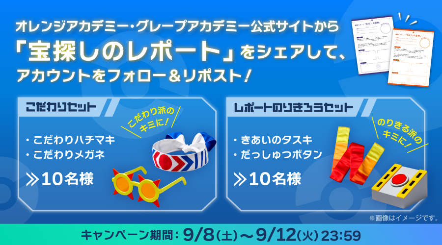 オレンジアカデミー/グレープアカデミーの公式サイトで、「宝探しのレポート」を提出するみんなを応援するために、X(旧Twitter)アカウント「ポケモン情報局」で、「宝探しのレポート提出応援!」キャンペーンを開催!