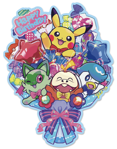 ピカチュウたちがお誕生日をおいわいするようすが描かれた、「バースデーブーケカード」をプレゼント!