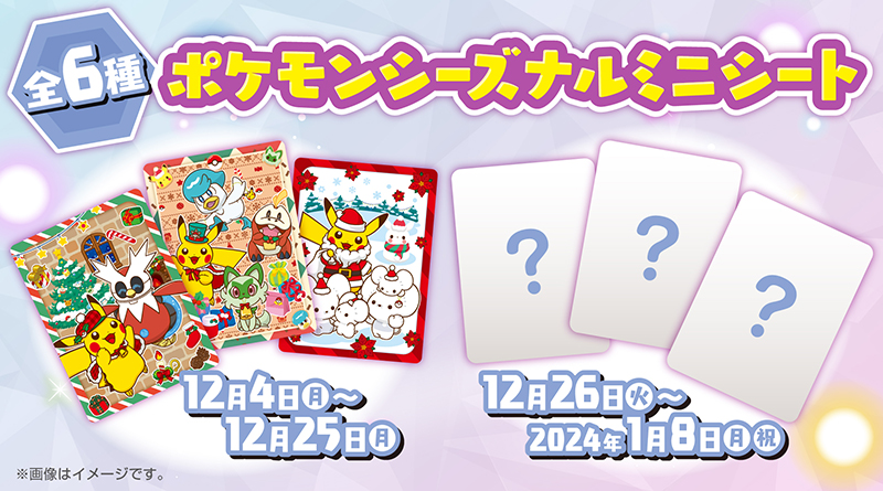 投稿画面を店頭のスタッフに見せると、クリスマスやお正月にぴったりの「ポケモンシーズナルミニシート」をランダムで1枚、プレゼント! 手のひらサイズで裏にメッセージが書けるようになっているから、お友だちや家族に送ってみよう!