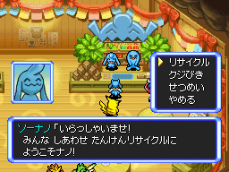 「たんけんリサイクル」では、探検で手に入れたどうぐを、他のどうぐと交換することができる。倉庫とトレジャーバッグ両方の中身を一度に見てくれるから、引き出す手間もかからない!
