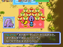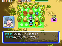 不思議のダンジョンを冒険していると、ときおり出現する「ひみつのかいだん」。階段を下りると、そこには「ひみつのバザー」が! ダンジョン攻略に役立つ、いろいろな施設があるぞ!!