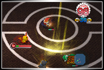 ステージに降りると、あついバトルが始まる。ポケモンたちを自由自在に動かして、多彩な技で敵を倒そう!