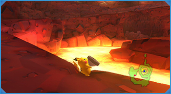 マグマが煮えたぎる、しゃく熱のゾーン。落ちたら大変!