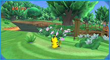 「ポケパーク」では、「ちからくらべ」というポケモン同士の遊びがはやっているぞ。この「ちからくらべ」には、「バトル」、「おいかけっこ」、「アスレチック」などさまざまな種類があって、これに勝つことで、勝負したポケモンと友だちになることができるのだ!